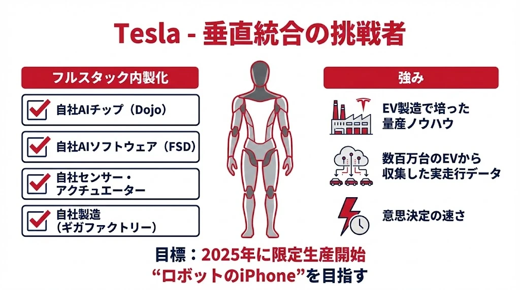 - Tesla:垂直統合で「ロボットのiPhone」を目指す挑戦者