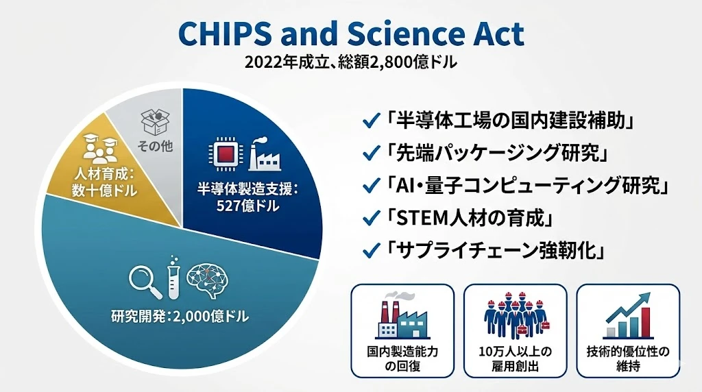 CHIPS and Science Act(CHIPS法)は、2022年に成立した米国の半導体・AI振興法です。