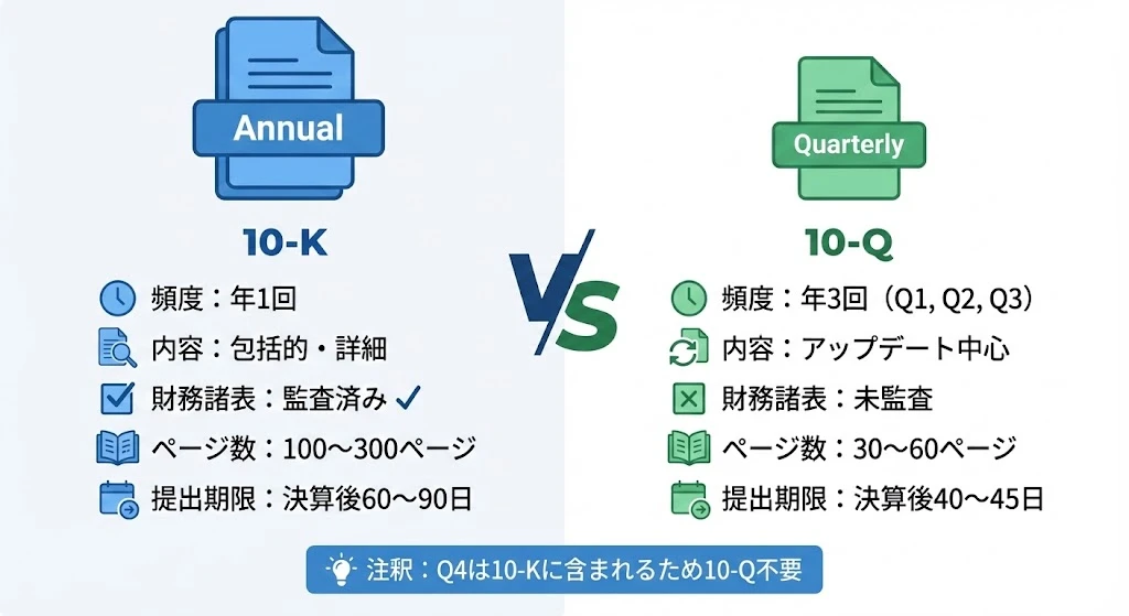 | 10-K | 年次報告書 | 年1回 | 企業の全体像を把握 |