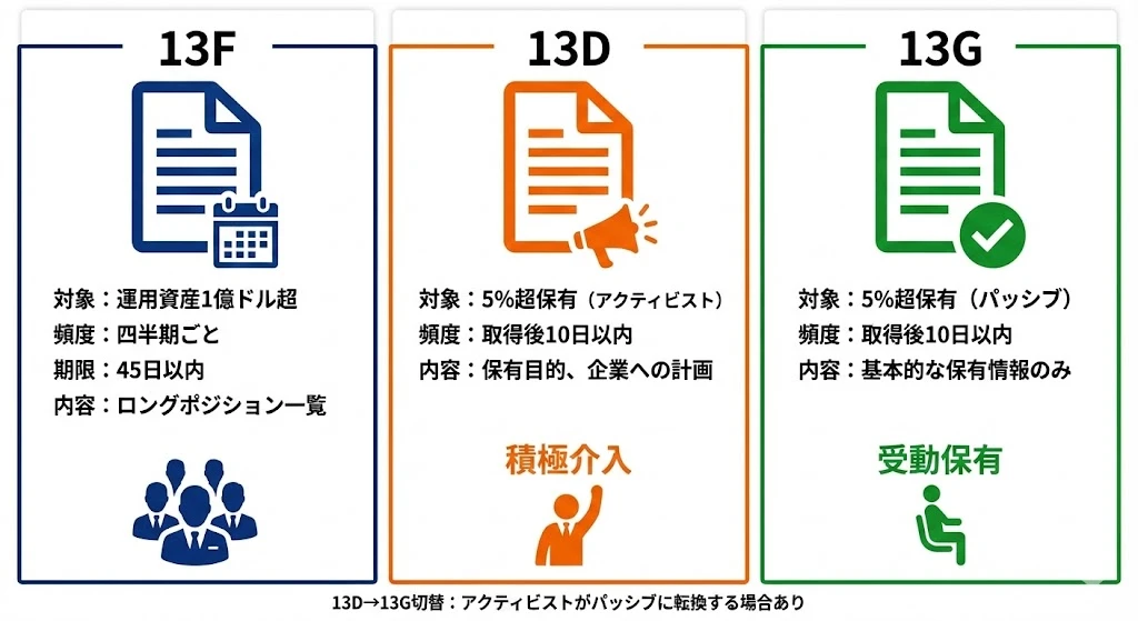 - 13F・13D・13Gの違いと役割