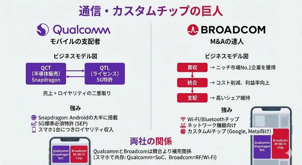 - Qualcomm:モバイルSoCと5G特許の二本柱