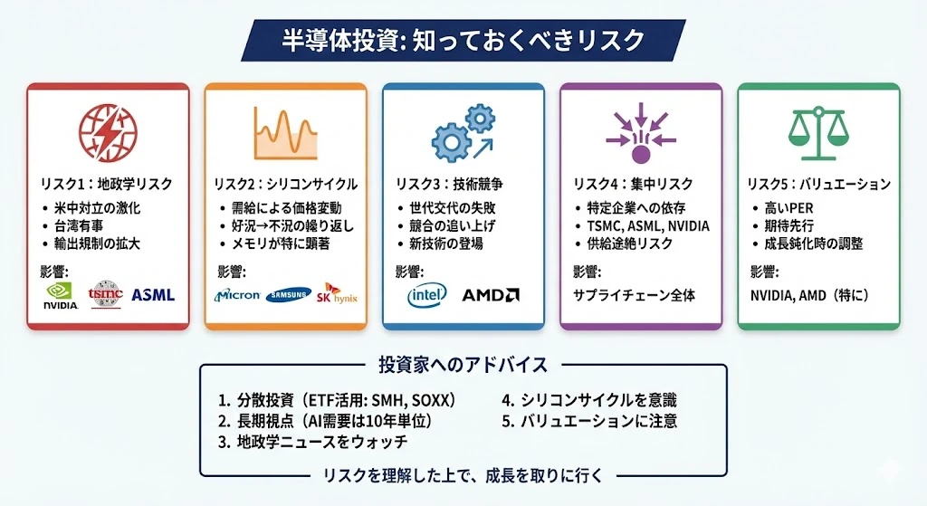 半導体投資における主要リスクを整理します。
