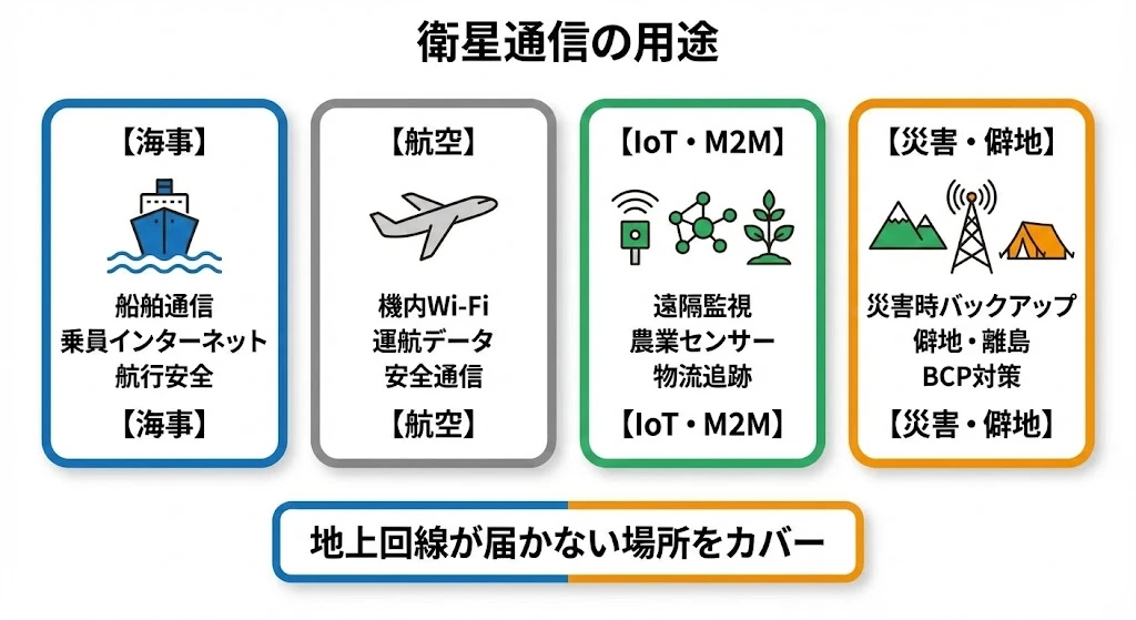 | 離島・僻地 | インターネット接続、遠隔医療・教育 |