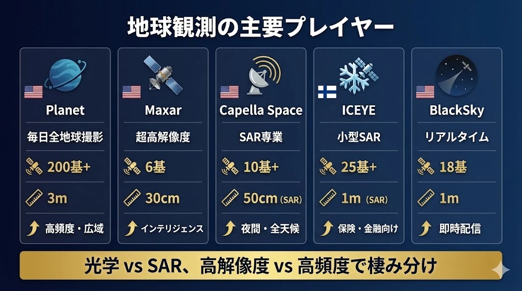 | Capella Space | 米国発、50cm解像度SAR、政府向け |