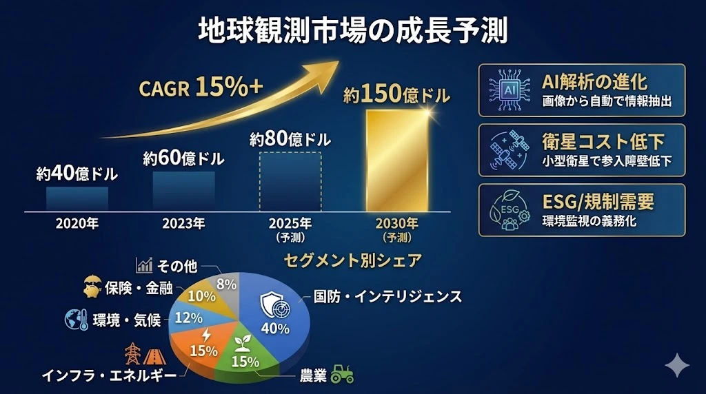 - 地球観測市場は2030年に約150億ドル規模に成長見込み