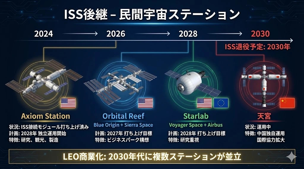 - ISS退役(2030年)後は民間宇宙ステーションが主役に