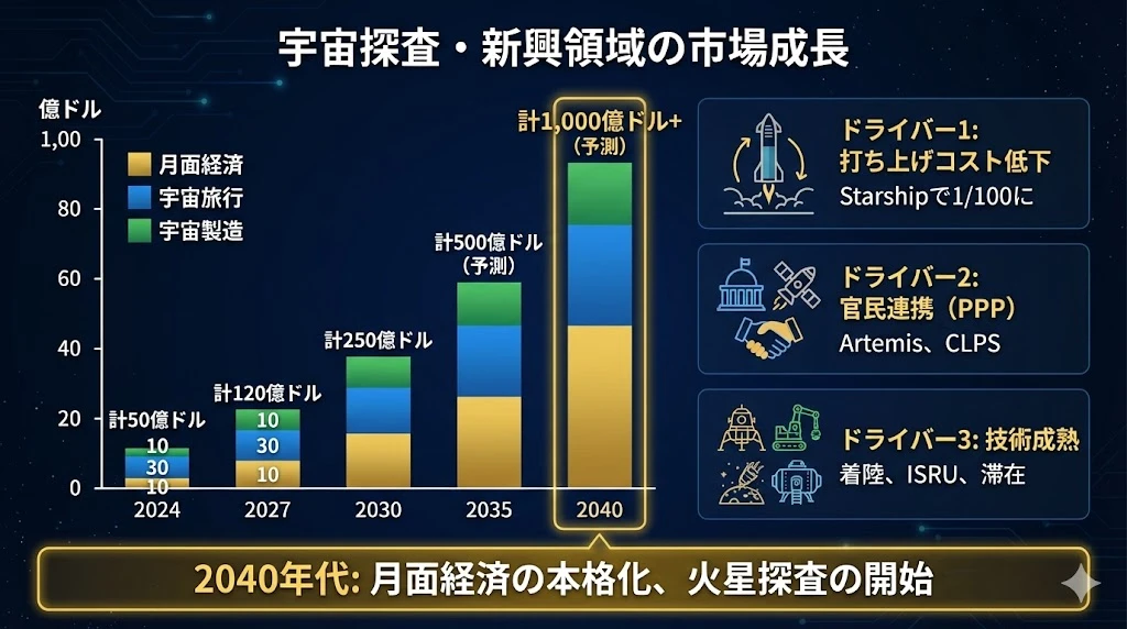| 月面経済 | 20億ドル | 100億ドル | 500億ドル |
