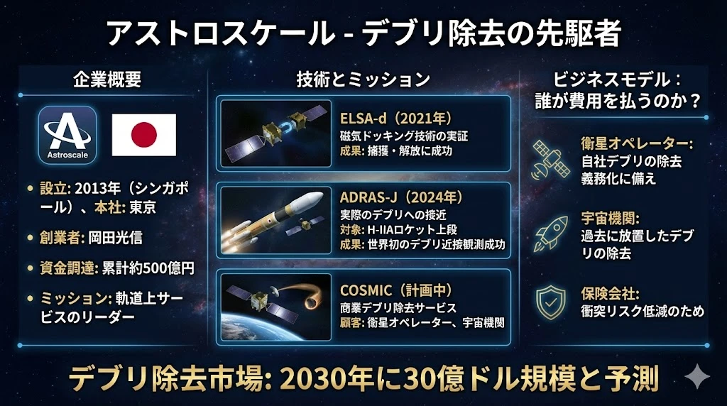- アストロスケールがデブリ除去ビジネスを先導、2024年に世界初のデブリ近接観測成功