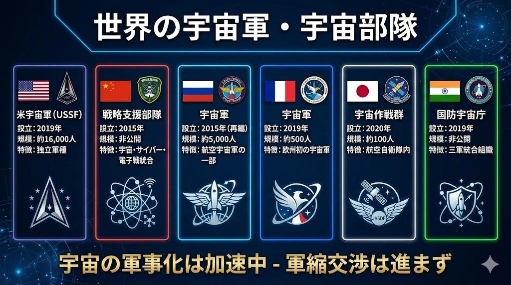 宇宙の軍事的重要性が高まる中、各国は宇宙専門の軍組織を設立しています。
